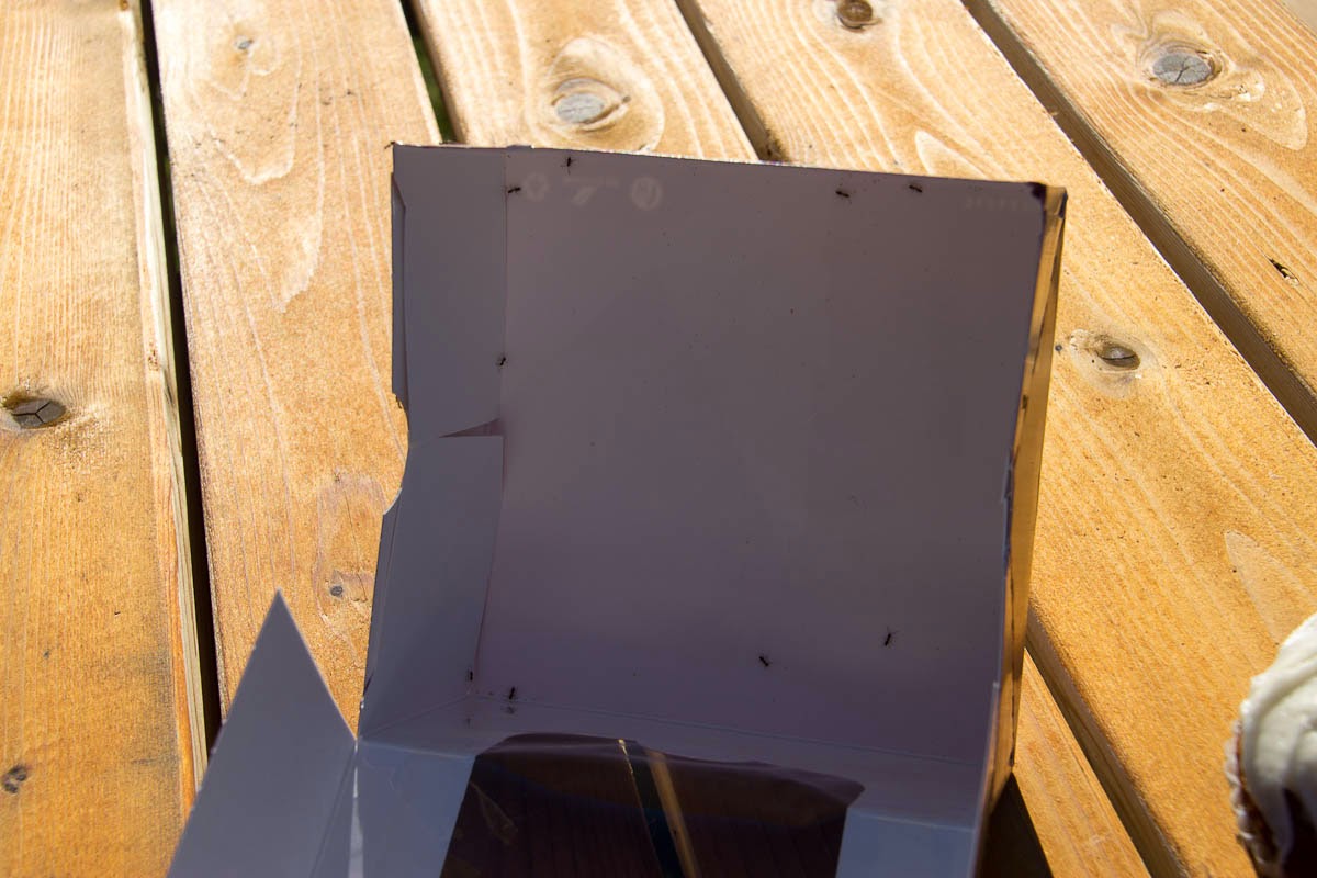 When I flipped open the box with my little treasure I noticed the swarm of tiny ants. Oh crap! I actually did consider brushing them off and eating it anyway but gave up and tossed it in the trash. Didn't need those calories anyway. It was hard to get a photo of all of them...those little buggers move fast!